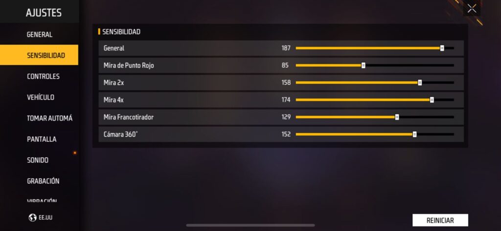 Configuración recomendada de sensibilidad en Free Fire para iPhone 12